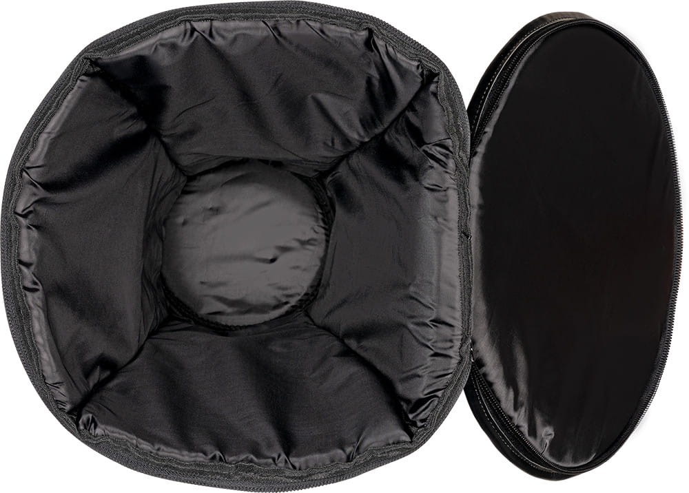 Zarówno górna klapa, podstawa jak i ścianki pokrowca są wypełnione gąbką o grubości ok. 2cm., która skutecznie zabezpiecza cały bęben przed uszkodzeniem. Logo firmy Meinl widoczne na górnej klapie i kieszeni wykonano techniką haftu maszynowego.