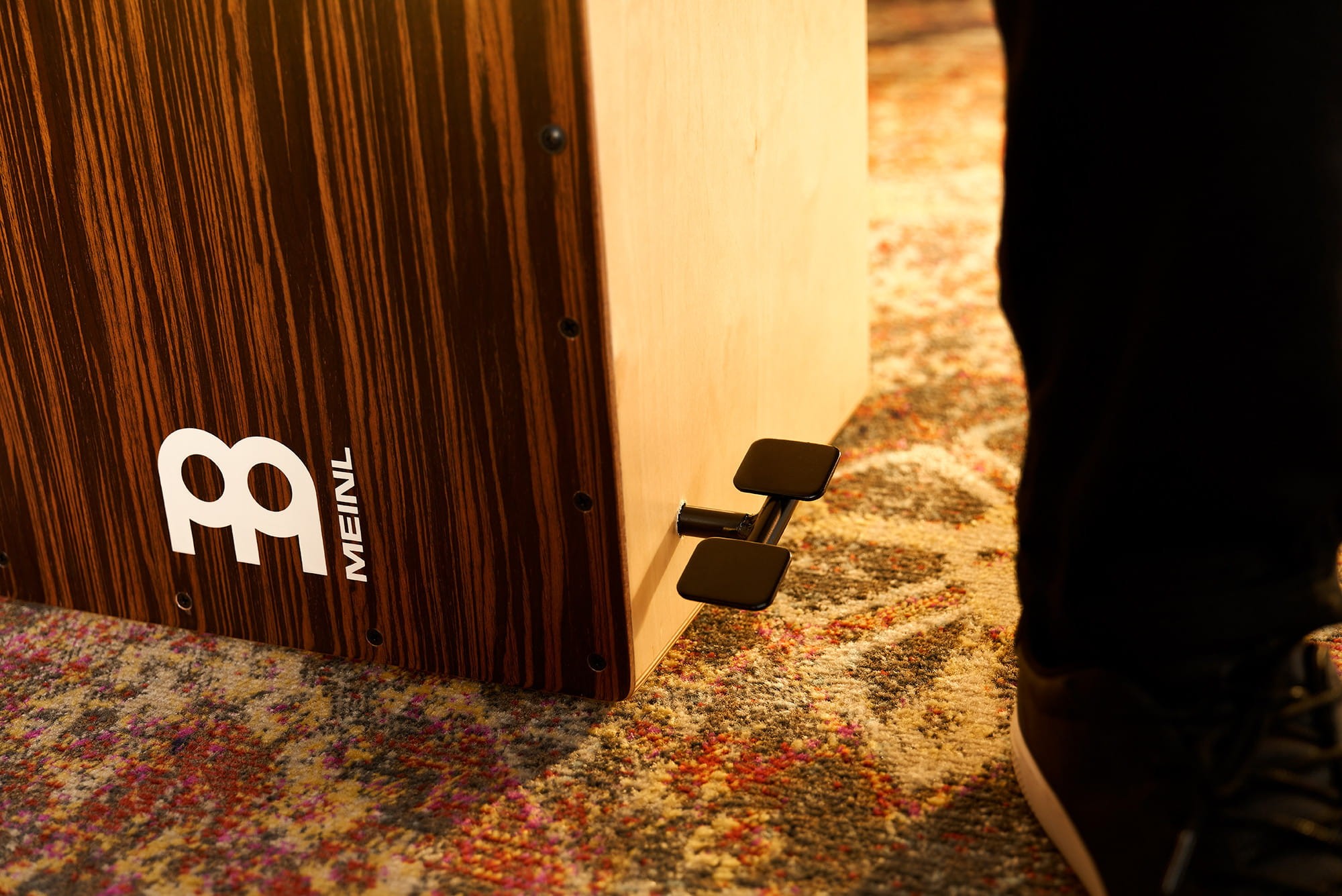 Pedał umieszczony z boku cajna umożliwia szybkie przejście między stylami Flamenco i peruwiańskim cajonem.