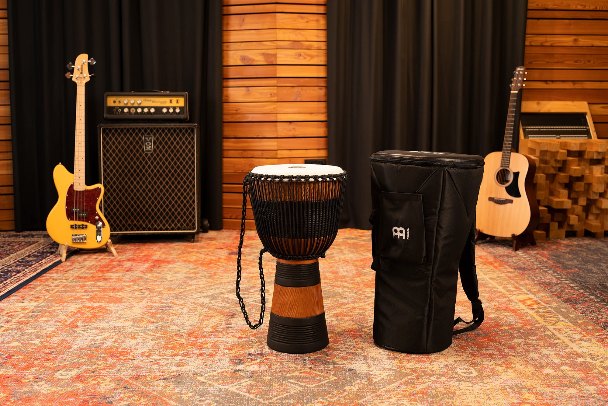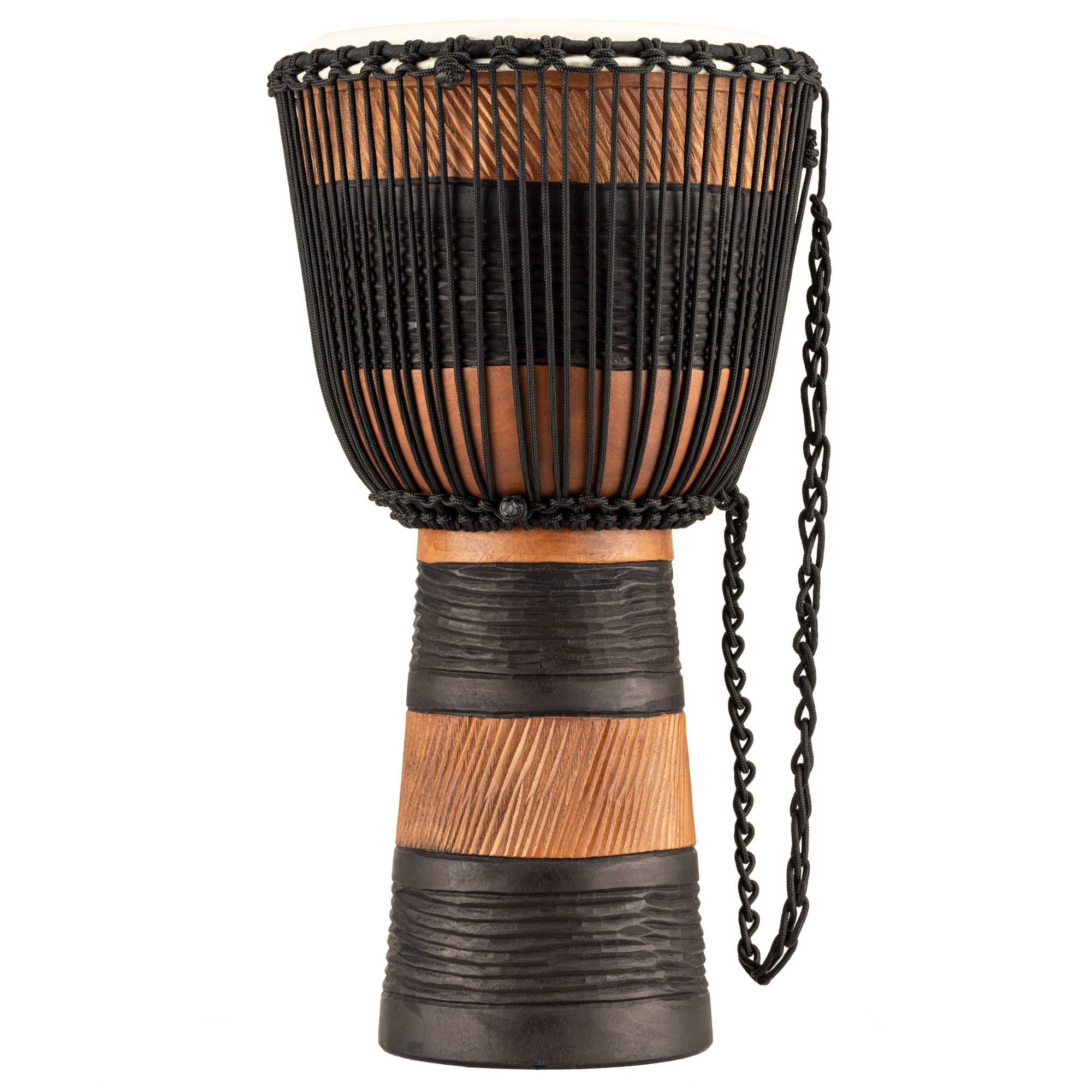 Seria Rytm Ziemi to niepowtarzalny wzór żłobień w czarnym i brązowym drewnie, który ma przypominać zaoraną rolę i rosnące na niej łany zbóż. Wszystkie oryginalne, sznurkowo strojone drewniane djemby w stylu afrykańskim firmy Meinl są wykonanywane z jednego kawałka drewna mahoniowego, pochodzących ze specjalnej plantacji tylko tych drzew. Te wysokiej jakości instrumenty są wytwarzane z wielką dbałością o szczegóły, co w efekcie daje niesamowite i pełne brzmienie. System strojenia sznurkowego Mali-Weave gwarantuje właściwe i trwałe strojenie instrumentu.