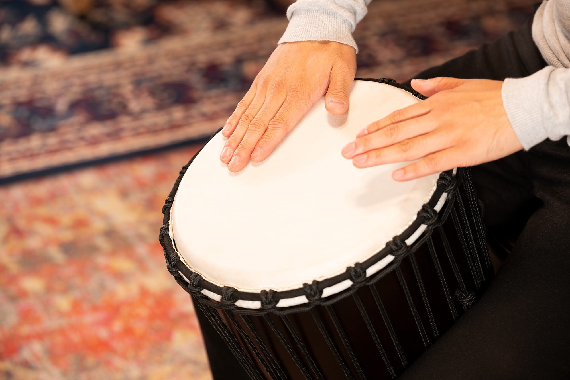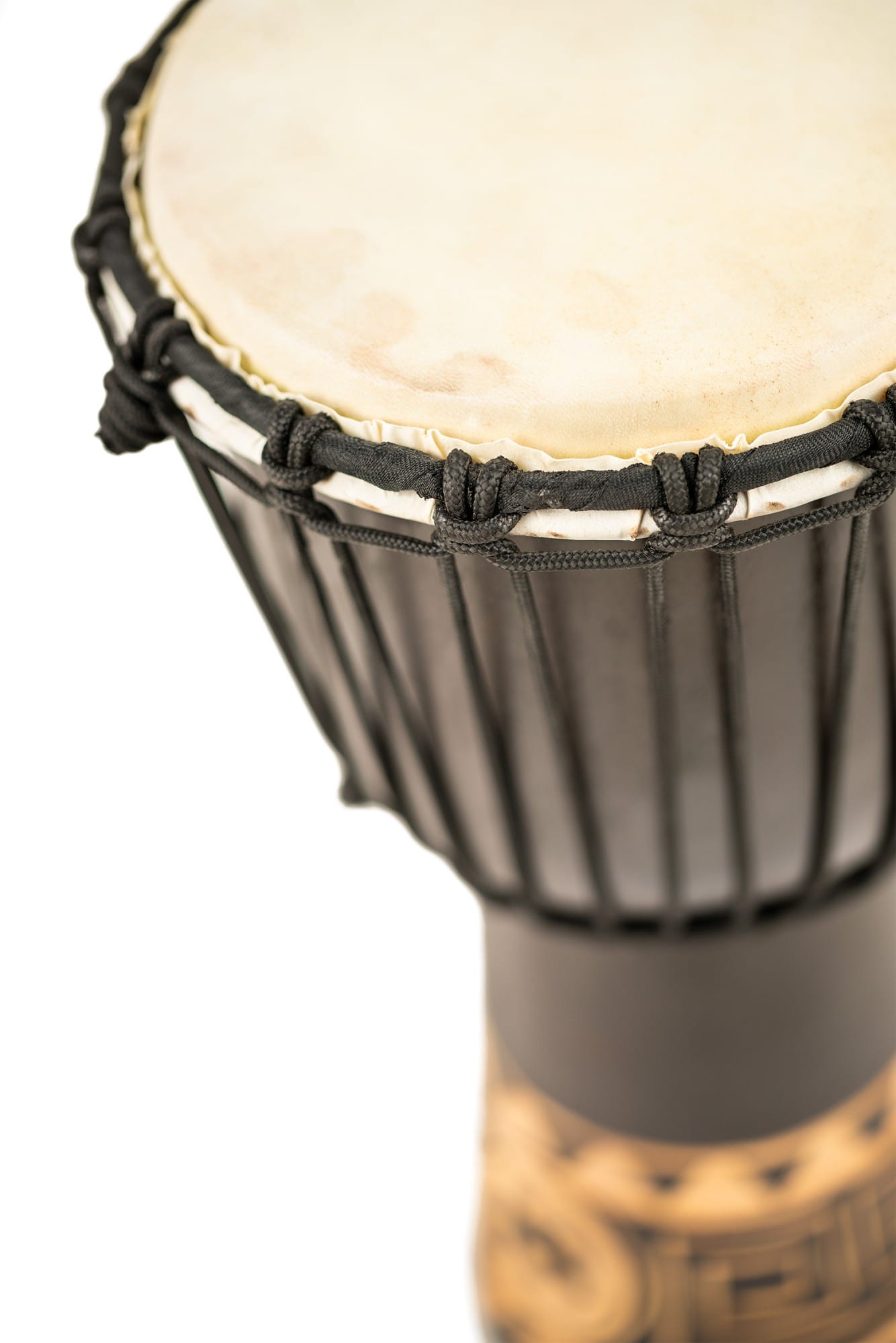 Drewniane Djembe z serii Headliner z naciągiem sznurkowym starannie wykonane z mahoniu.
