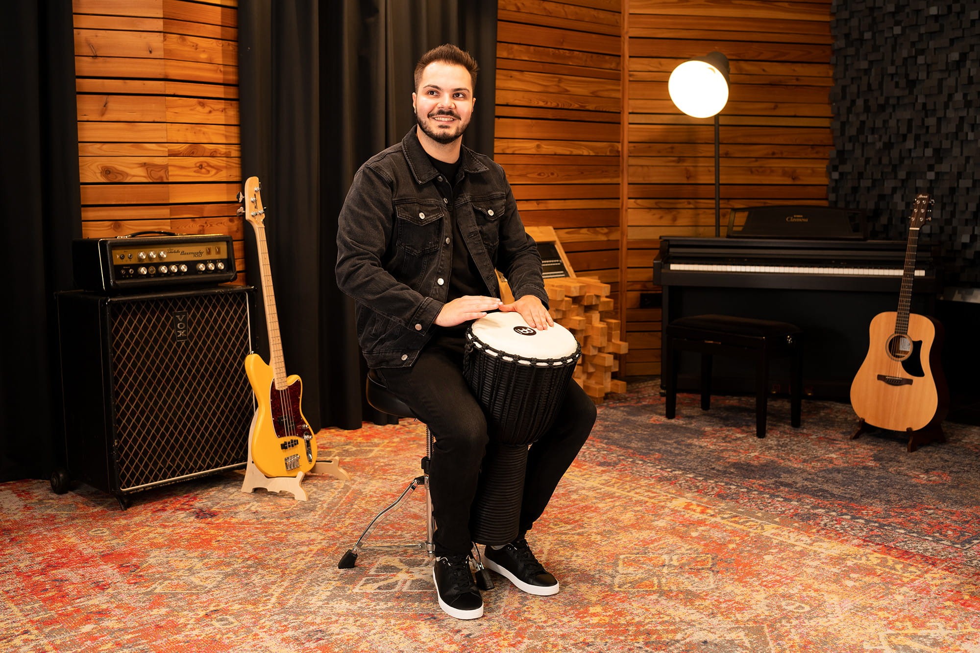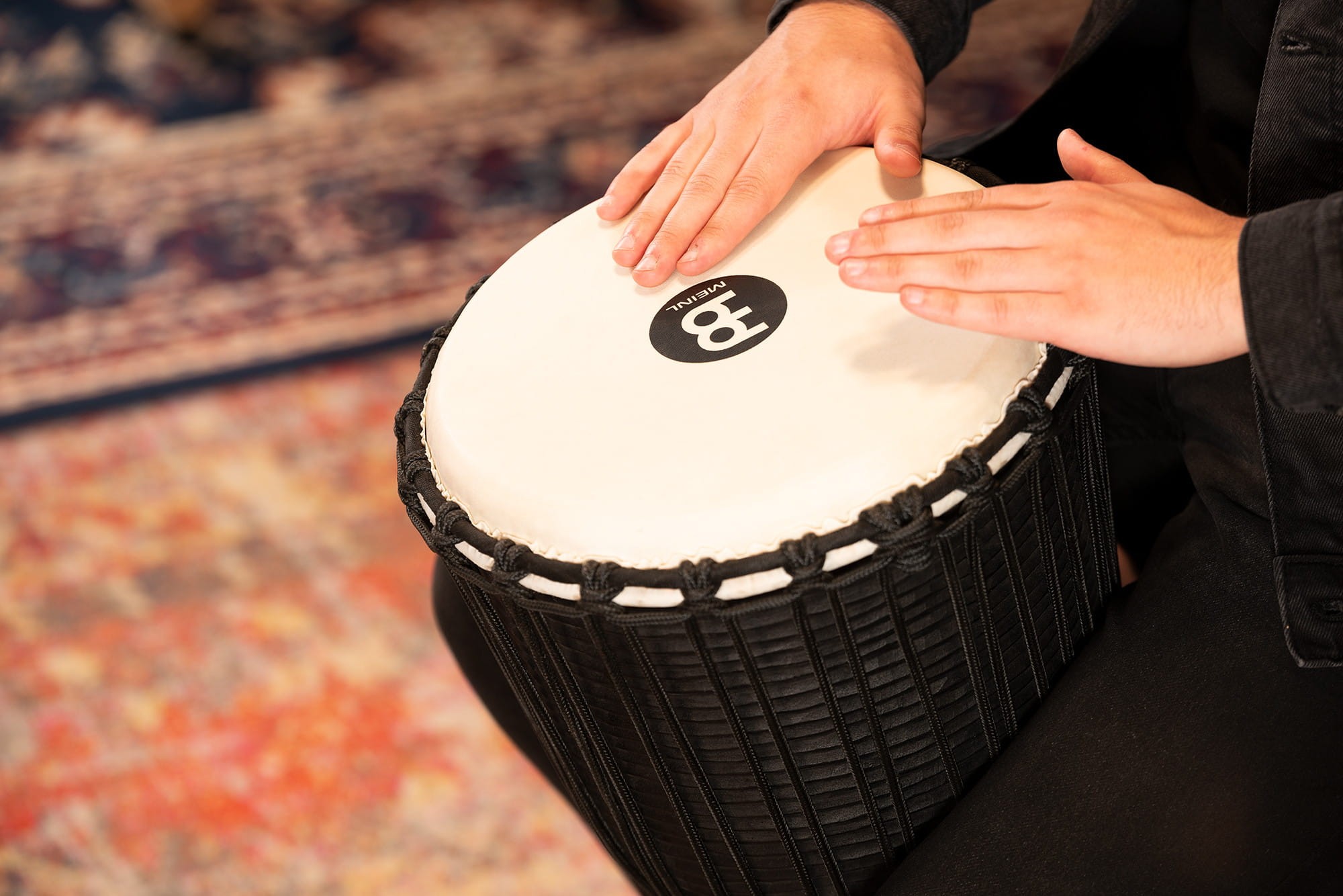 Drewniane Djembe z serii Headliner z naciągiem sznurkowym starannie wykonane z mahoniu.