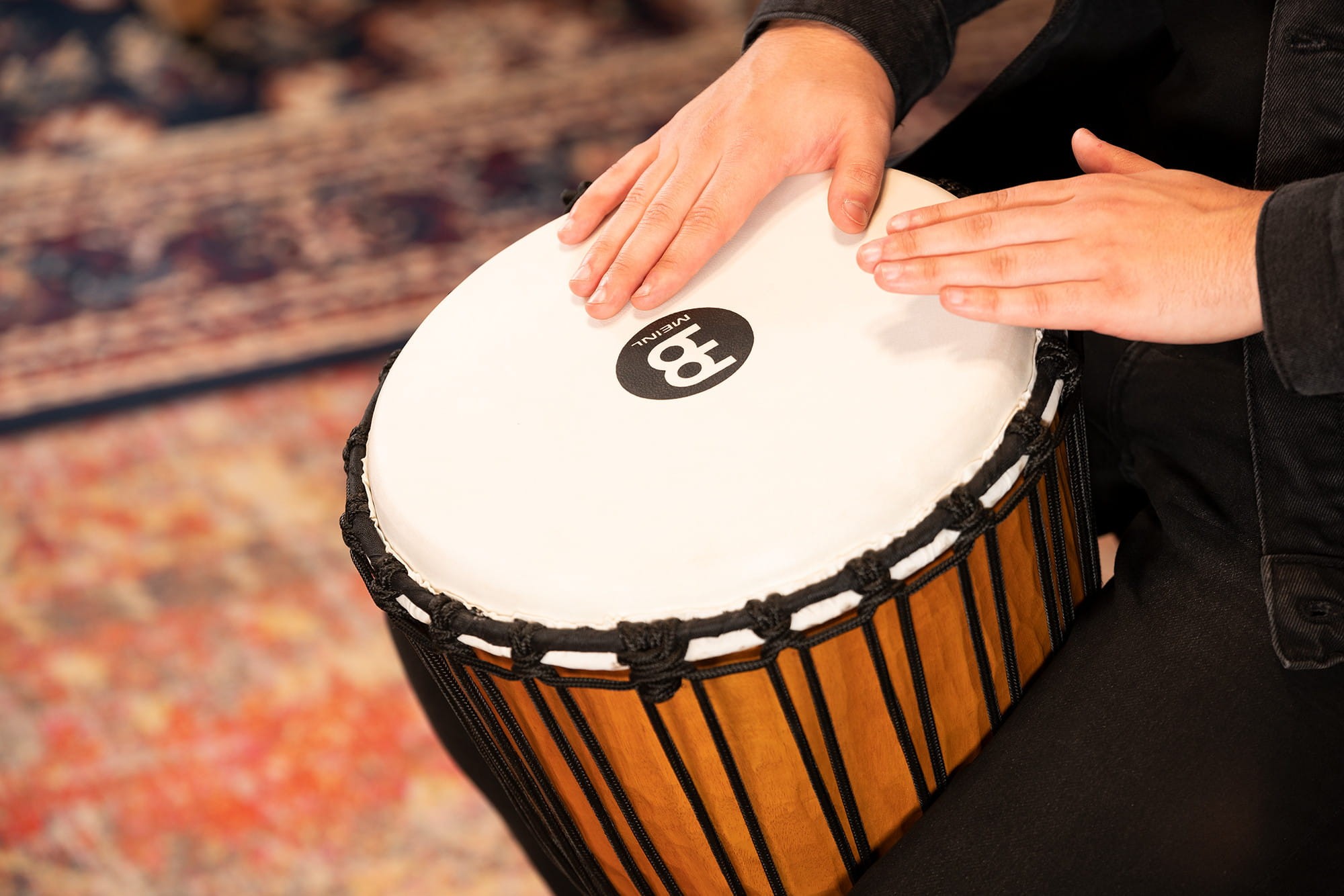Drewniane Djembe z serii Headliner z naciągiem sznurkowym starannie wykonane z mahoniu.