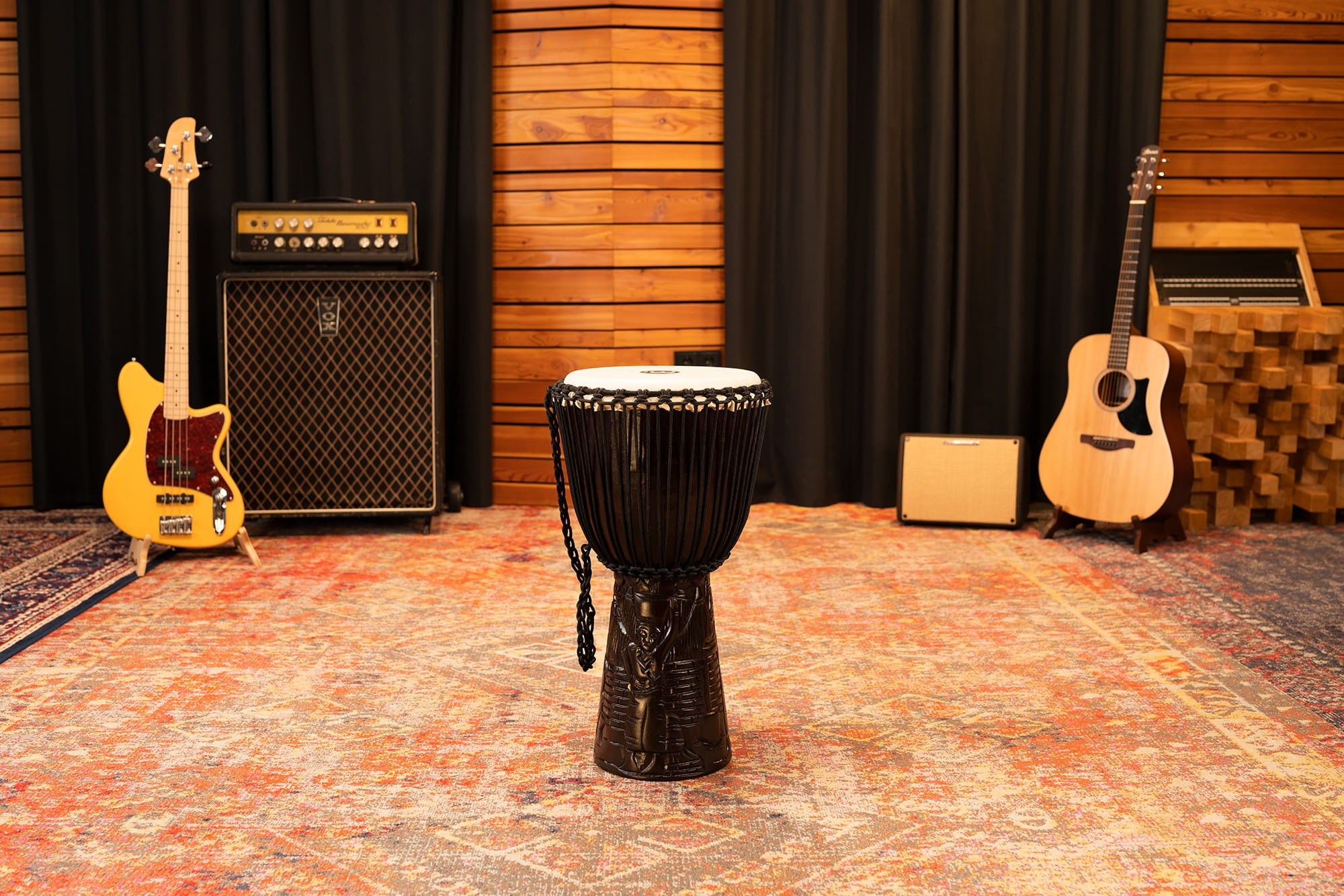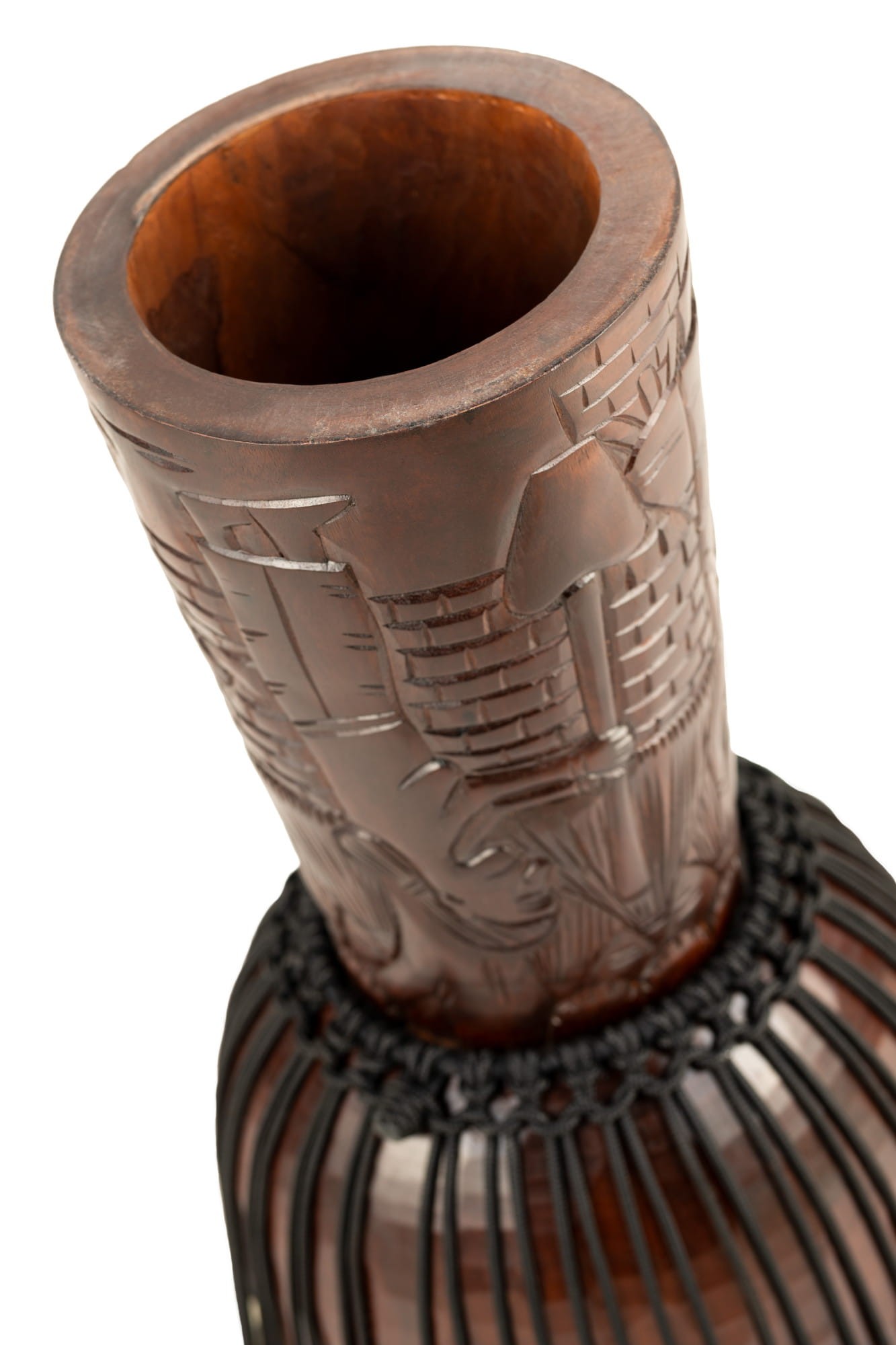 Profesjonalne afrykańskie djembe są fachowo wyciosane z litego kawałka drewna mahoniowego pochodzącego ze specjalnej plantacji. Te wysokiej jakości instrumenty są wytwarzane z wielką dbałością o szczegóły, co w efekcie daje niesamowite i pełne brzmienie. System strojenia sznurkowego Mali-Weave gwarantuje właściwe i trwałe strojenie instrumentu.