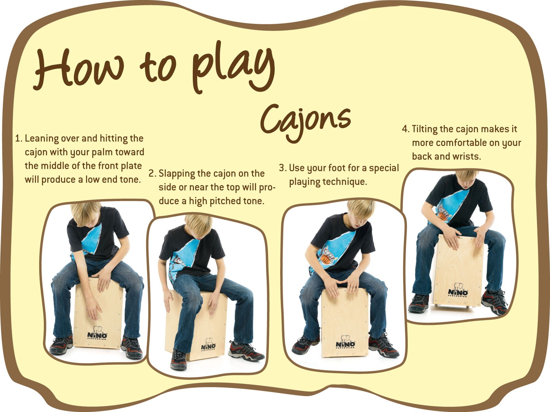 Cajon dla dzieci z serii NINO Percussion z korpusem z brzozy w naturalnym wykończeniu.