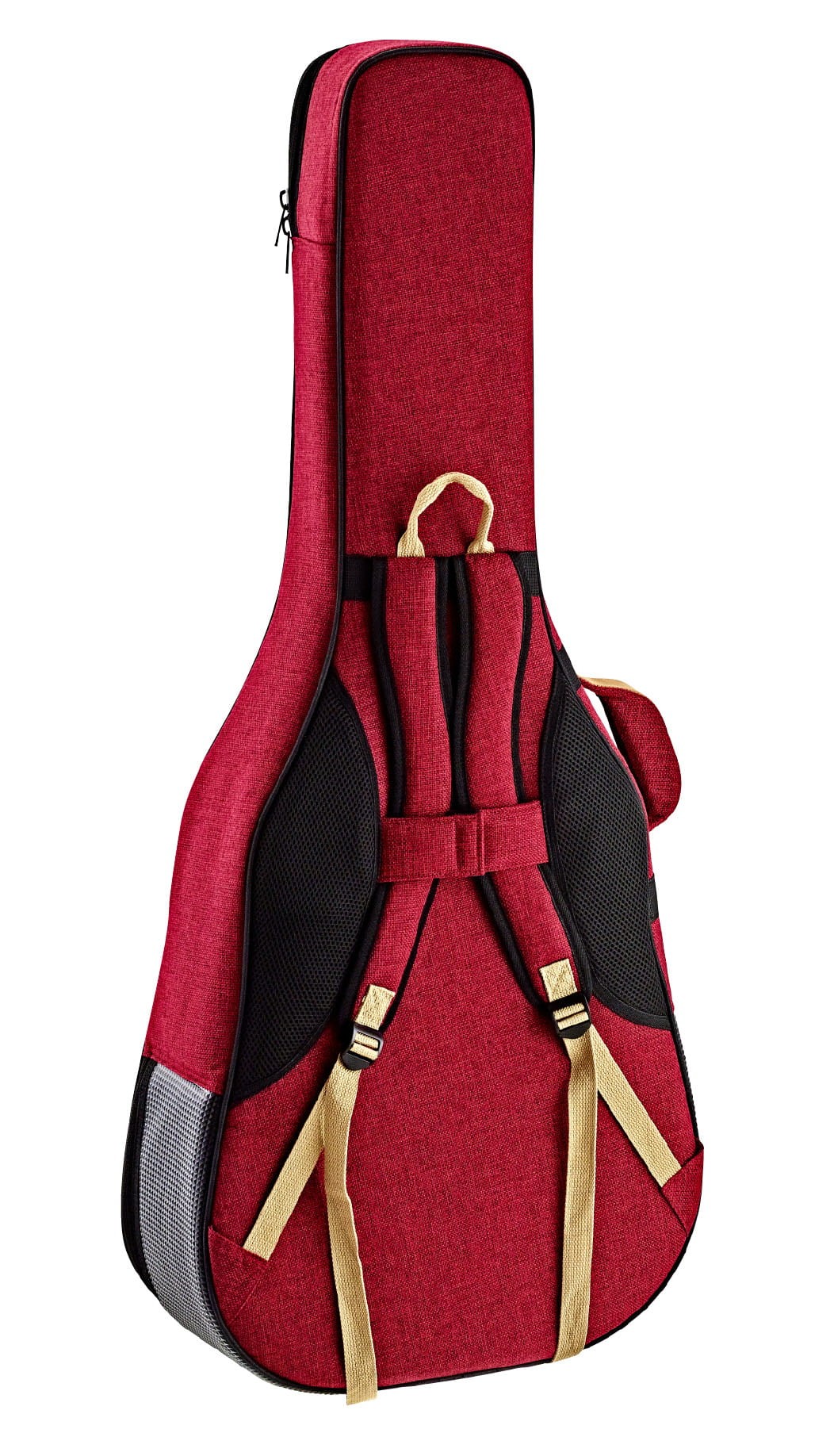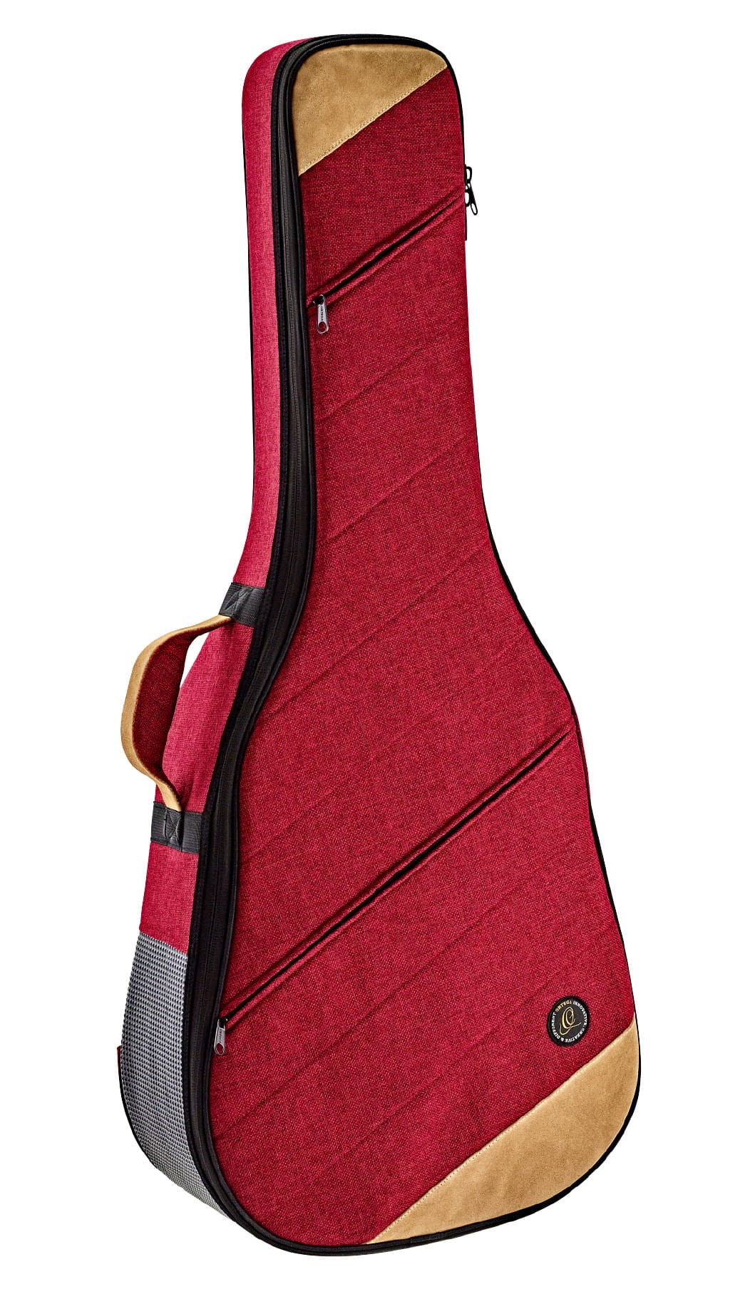 Futerał ma wytrzymałe zamki, wygodne, regulowane paski na ramiona, rączkę pokrytą skórą zamszową i dwie przegrody z przodu.