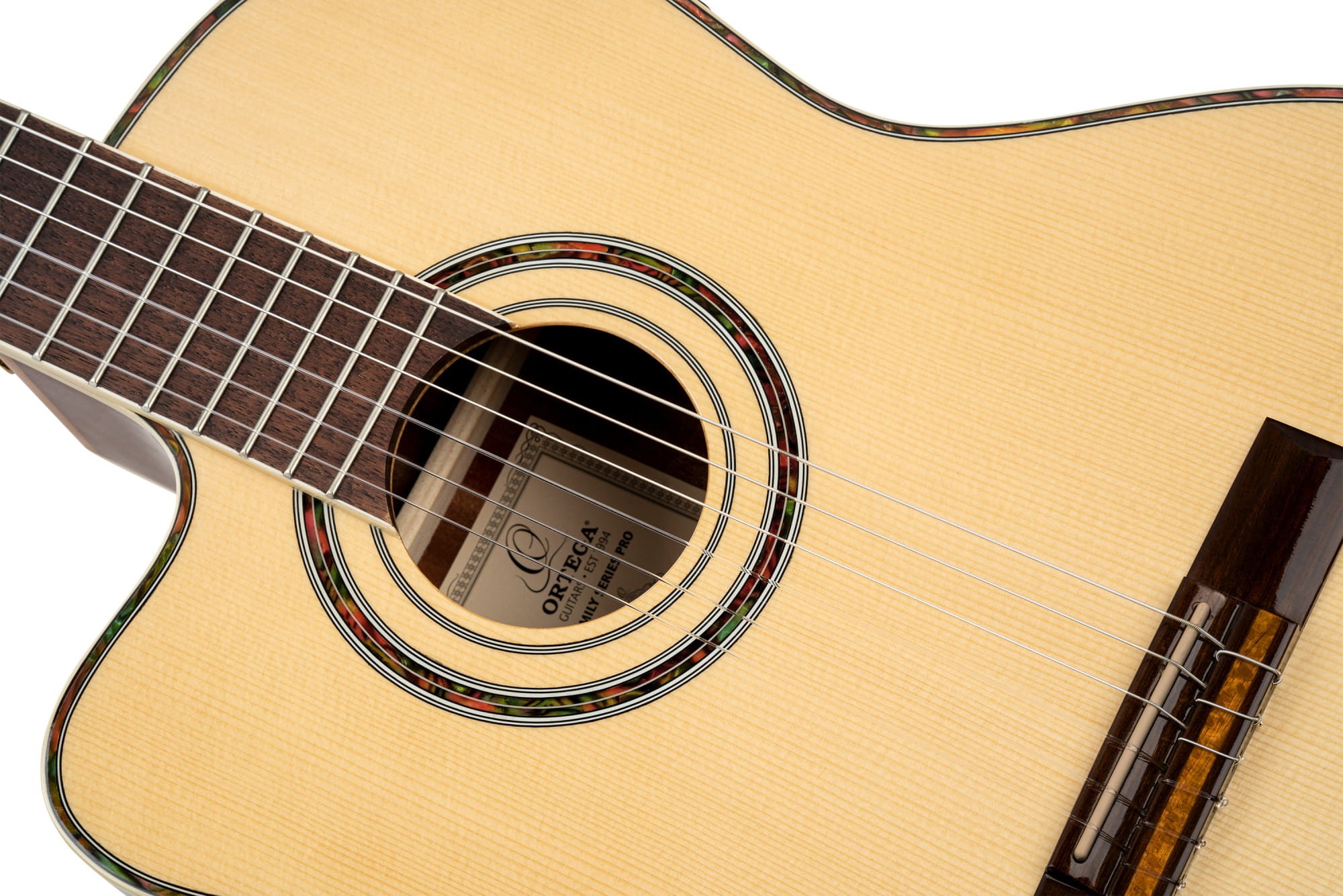 Gitara elektro-klasyczna Ortega z wycięciem Cutaway i elektroniką MagusPro Preamp / Pickup z serii Family PRO w komplecie z pokrowcem dla leworęcznych.