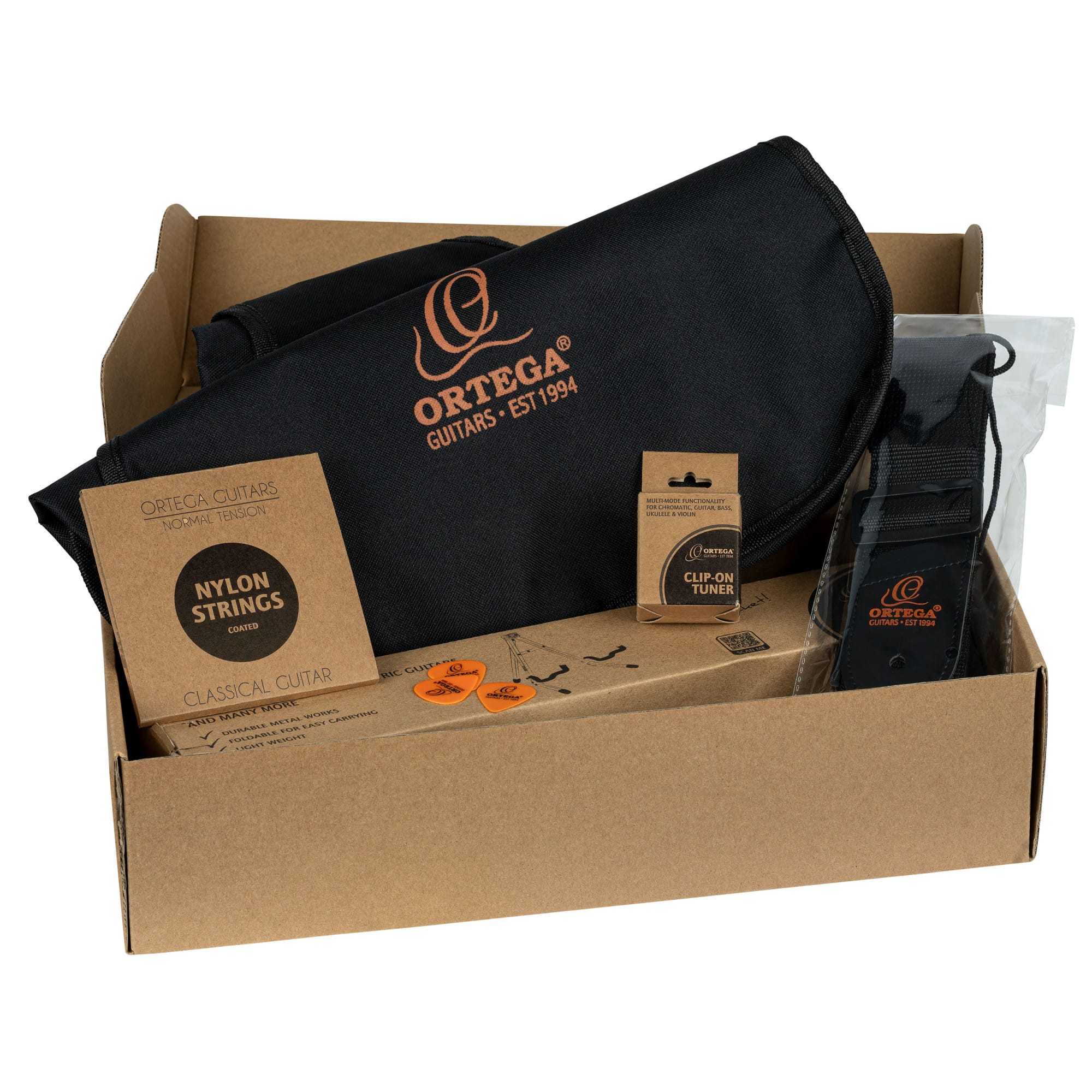 Wszystko, czego potrzebujesz, aby zacząć grać na gitarze. Pakiet picker Guitar Ortega oferuje doskonałą jakość i łączy gitarę nylonową z niezbędnymi akcesoriami.