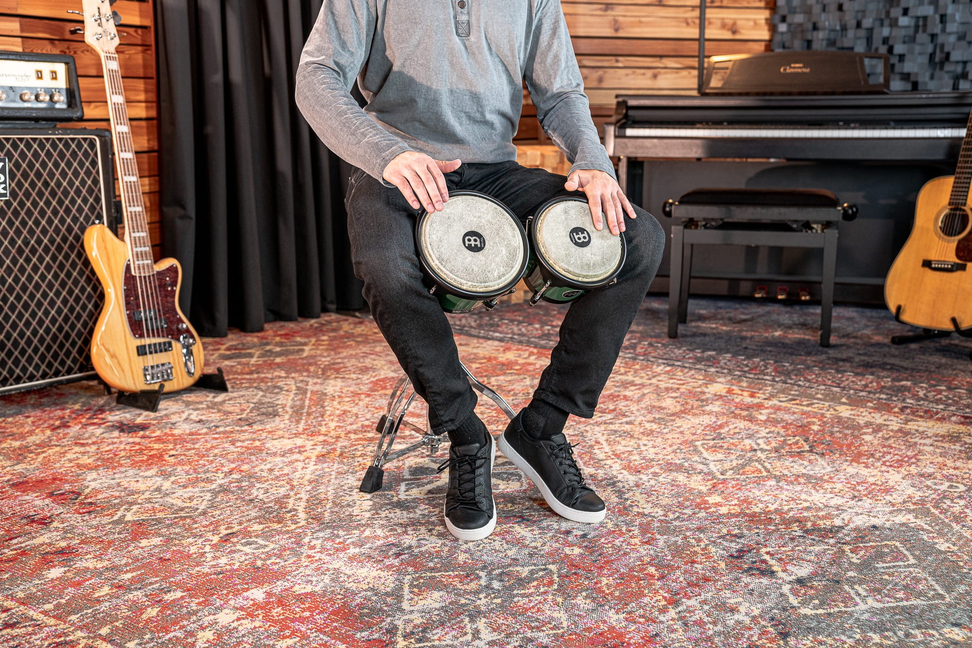 Bongosy HB50FG z serii Headliner wykonane z ABS w kolorze zielonym. Bongosy wykonane są wg. tradycyjnego wzoru. Kompaktowe wymiary i niewielka waga kotła z ABSu tworzą bardzo lekki instrument.