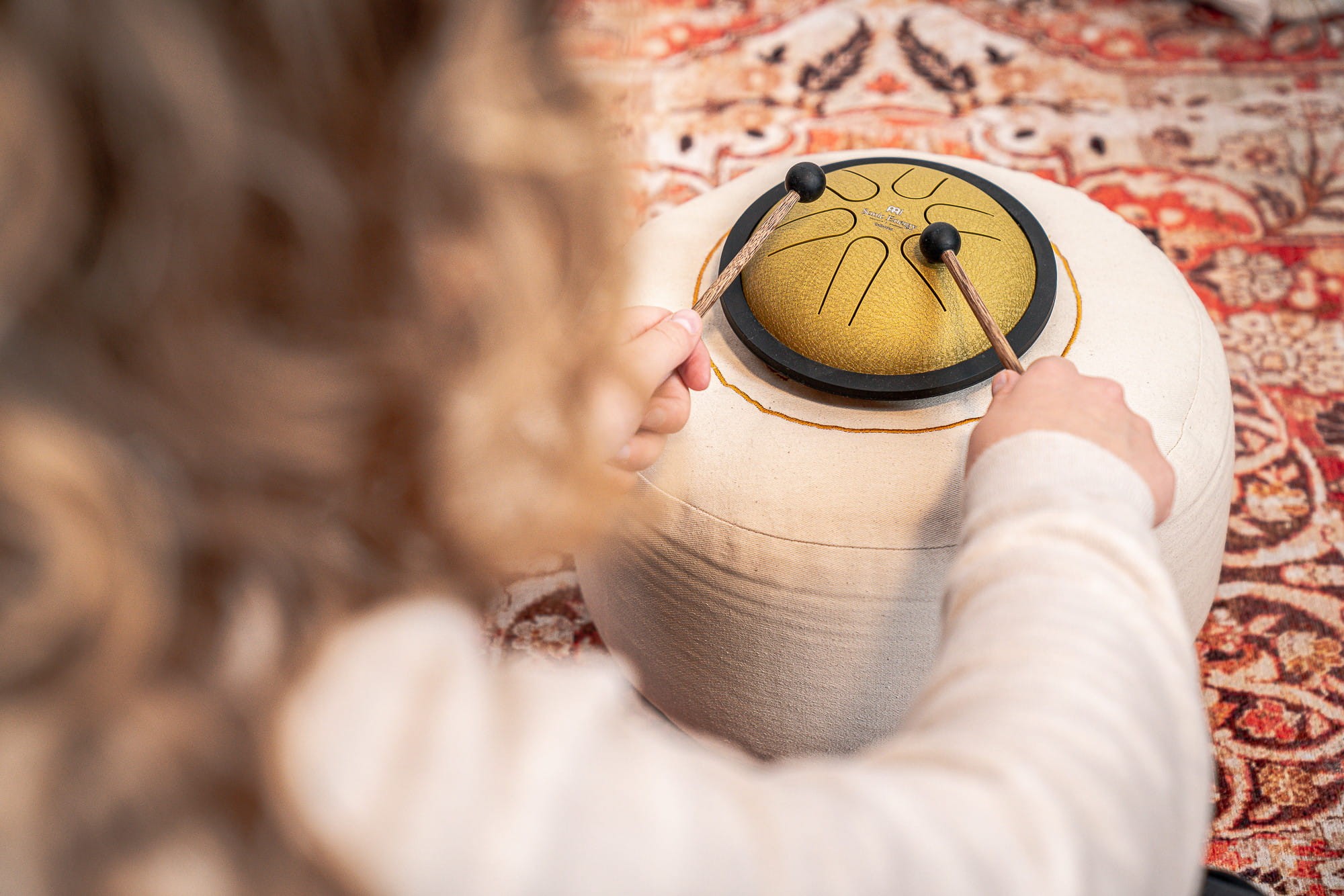 Jego wstępnie dostrojona skala oznacza, że nie ma żadnych fałszywych nut, a dźwięk jest eteryczny i kojący (jak bęben z miękkiej stali). Zawiera dwa miękkie gumowe młotki dla pełnego i spokojnego brzmienia.